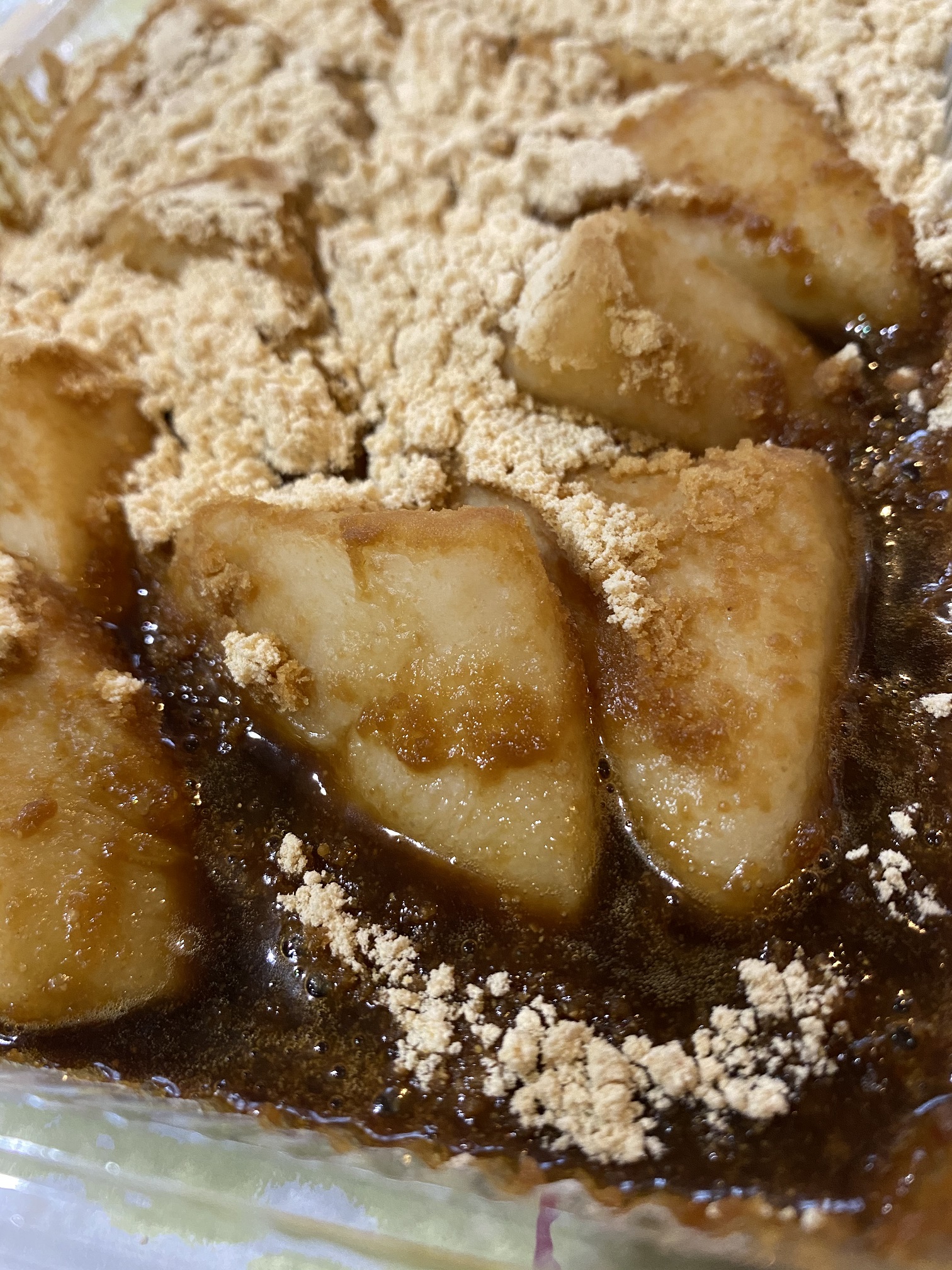 黄な粉の量に対して黒蜜多めなところがうれしい。いくらなんでも「飲み物」はないやろ~ということで食してみました 「ほんまや」噛むまもなくトロッと喉を通ります気になる方は、是非どうぞ