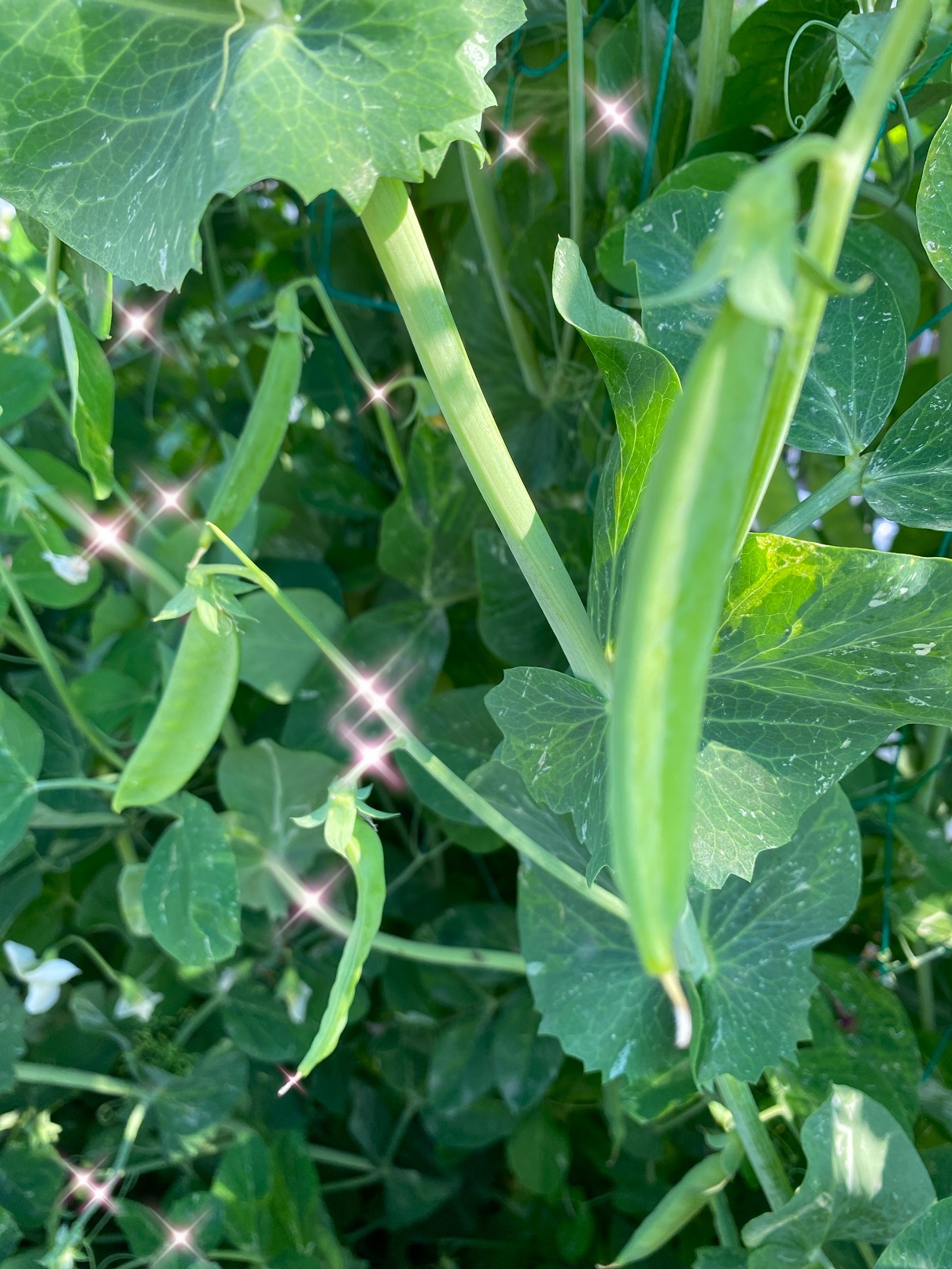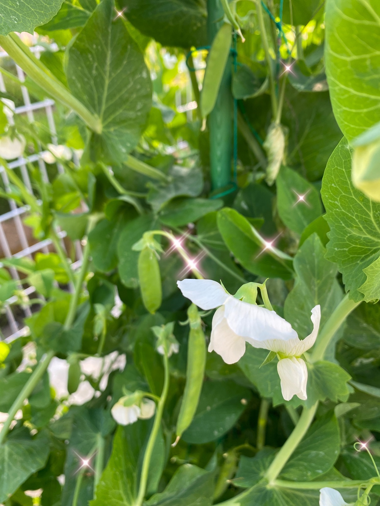 絹さやエンドウの実がちらほらとなり、