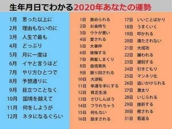 さて、2020年あなたの運勢は?