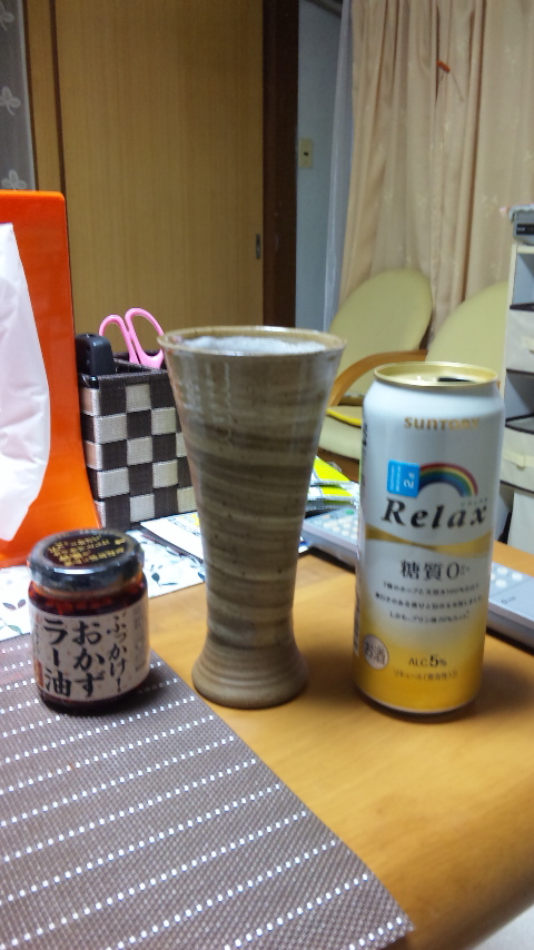 今はプリン体70%カット糖質0 陶器のコップ ラー油はおまけです